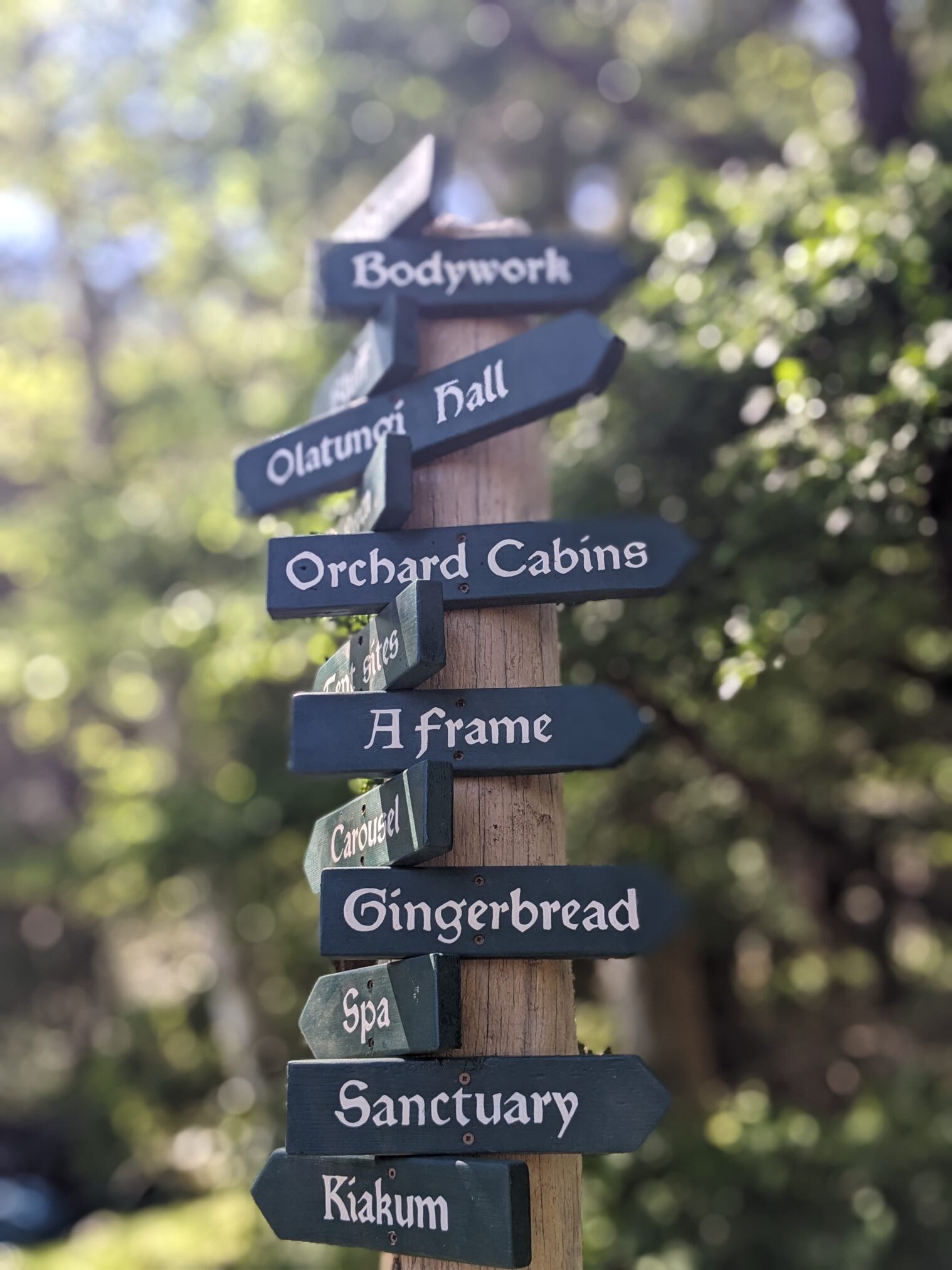 On the topic of directions and finding your way at Hollyhock, check out our dear colleague, artist Ebony Rose and her newly hand painted Campus signage! We love her work – you can catch her at her upcoming art show hosted at the Old Schoolhouse Gallery this summer in Whaletown (last 2 weeks of July).