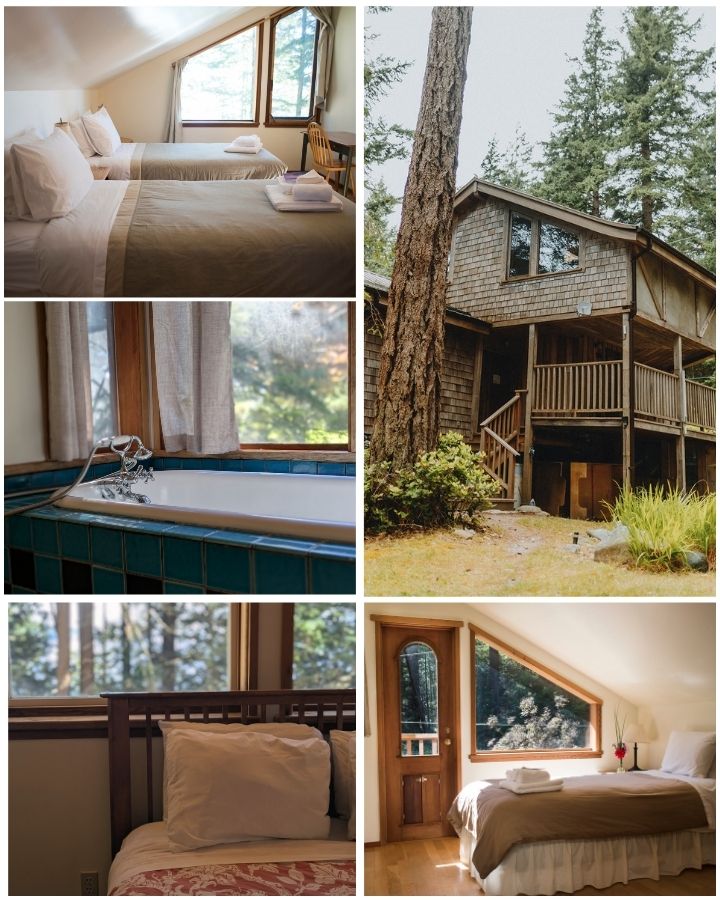 Some rooms offer glimpses of the ocean, while others open to the quiet beauty of the forest. Each provide a restful space to unwind and recharge.