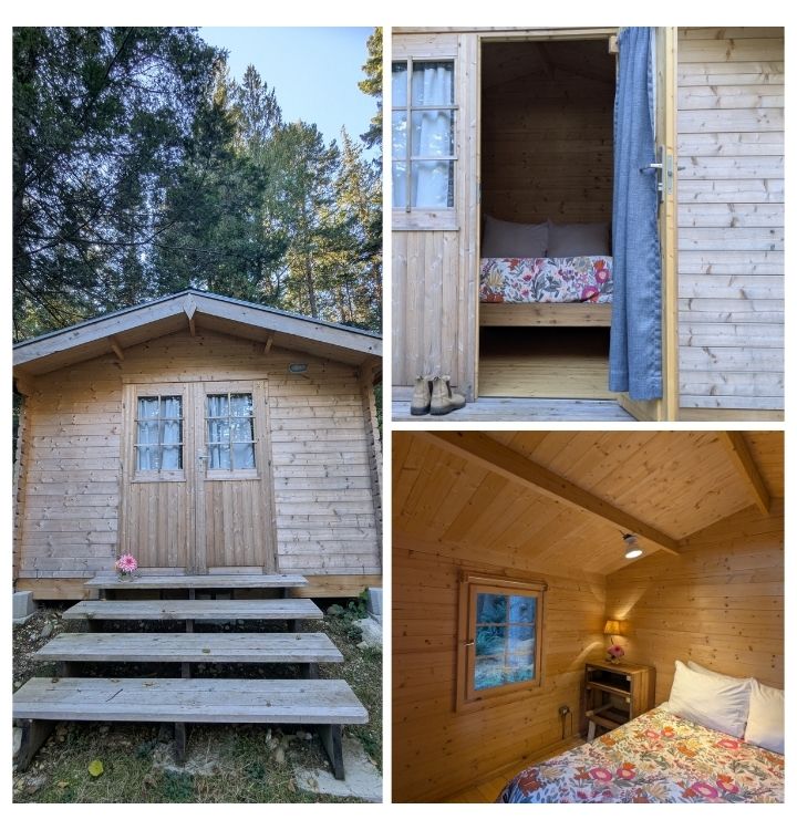 Foxglove Cabin is a charming standalone cabin featuring a cozy queen bed. This private cabin promises a room immersed in nature, and shares the beautifully crafted bathhouse with the camping sites. The bathhouse is complete with hot showers and flush toilets, and is only a few steps away from the cabin.